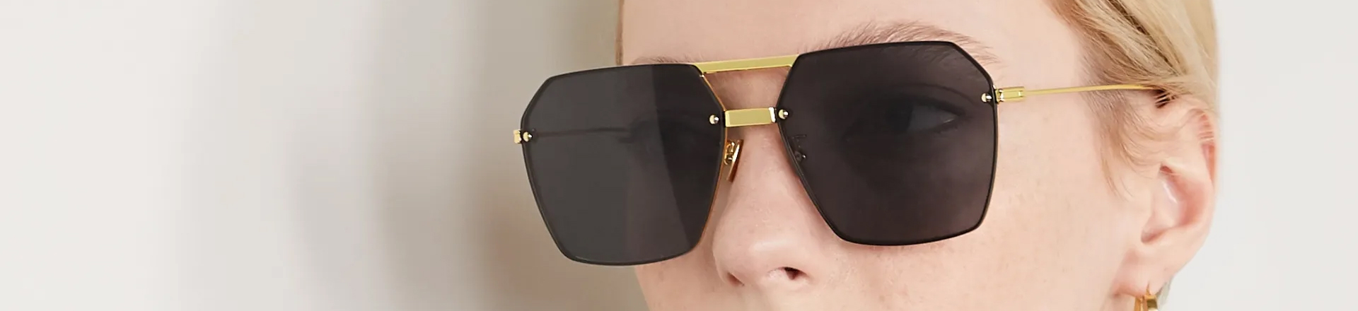 Λεπτά και λυγισμένα σχήματα διαθέτουν την εμβληματική μεταλλική κορδέλα στους λεπτούς βραχίονες, δημιουργώντας μια εκλεπτυσμένη και σπορ εμφάνιση εμπνευσμένη από τη δεκαετία του ’90.