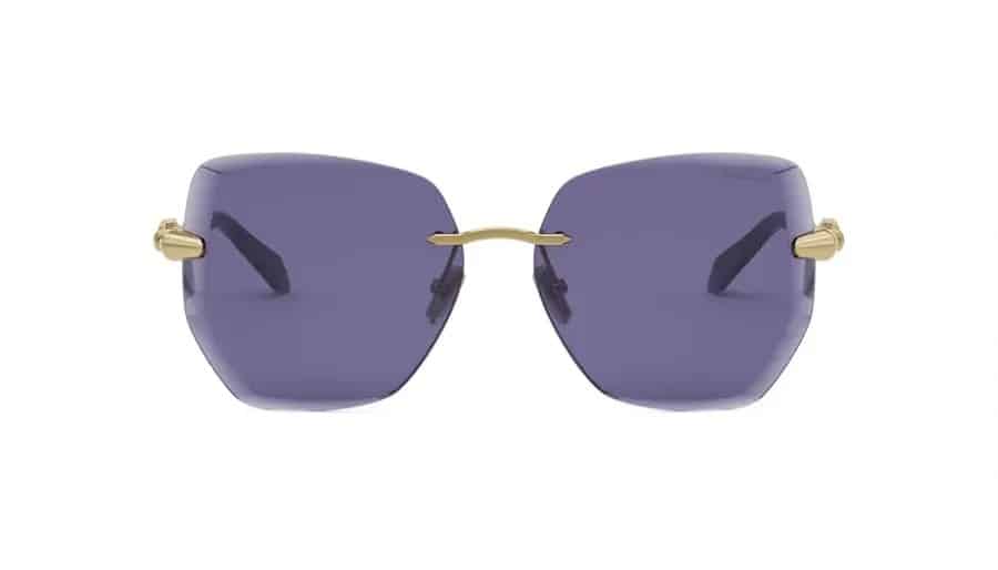 Γυναικεία γυαλιά ηλίου BVLGARI BV40045U/32Y/59 από τη συλλογή Serpenti Viper, με χρυσό μεταλλικό σκελετό και μωβ φακούς κατηγορίας 3.