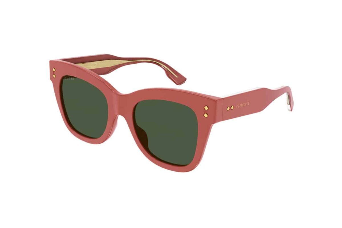Tα Γυναικεία Γυαλιά Ηλίου GUCCI GG1082S (004/52), έχουν σχήμα τετράγωνο. Ο σκελετός είναι χρώμα ροζ και είναι κοκάλινος. Ο βραχίονας είναι πλατύς με χρυσά χαρακτηριστικά, ενώ τον διακοσμεί το χρυσό εμβλημα του οίκου “GUCCI”. Οι φακοί είναι Πράσινοι Polycarbonate για 100% UVA /UVB προστασία από τη βλαβερή ηλιακή ακτινοβολία.