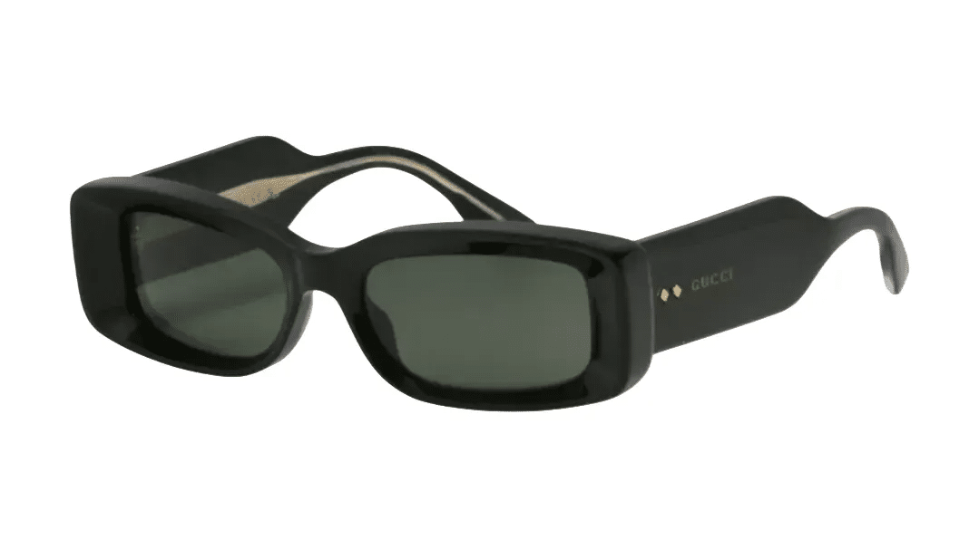 Οι βραχίονες κοσμούνται με το ολόγραφο λογότυπο GUCCI σε χρυσό χρώμα, δημιουργώντας την κλασική, ακαταμάχητη αντίθεση Black & Gold. Είναι το ιδανικό αξεσουάρ για γυναίκες που θέλουν να προσθέσουν μια δόση μυστηρίου και δυναμισμού στο στυλ τους.