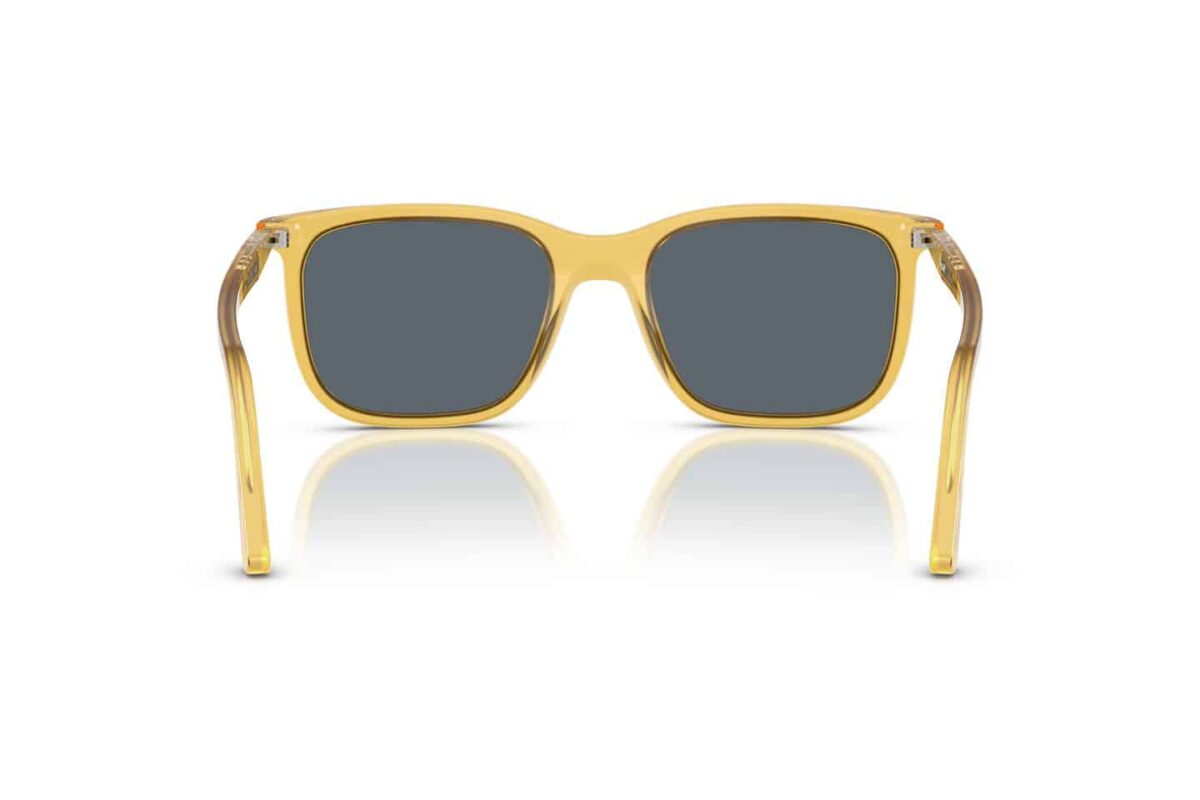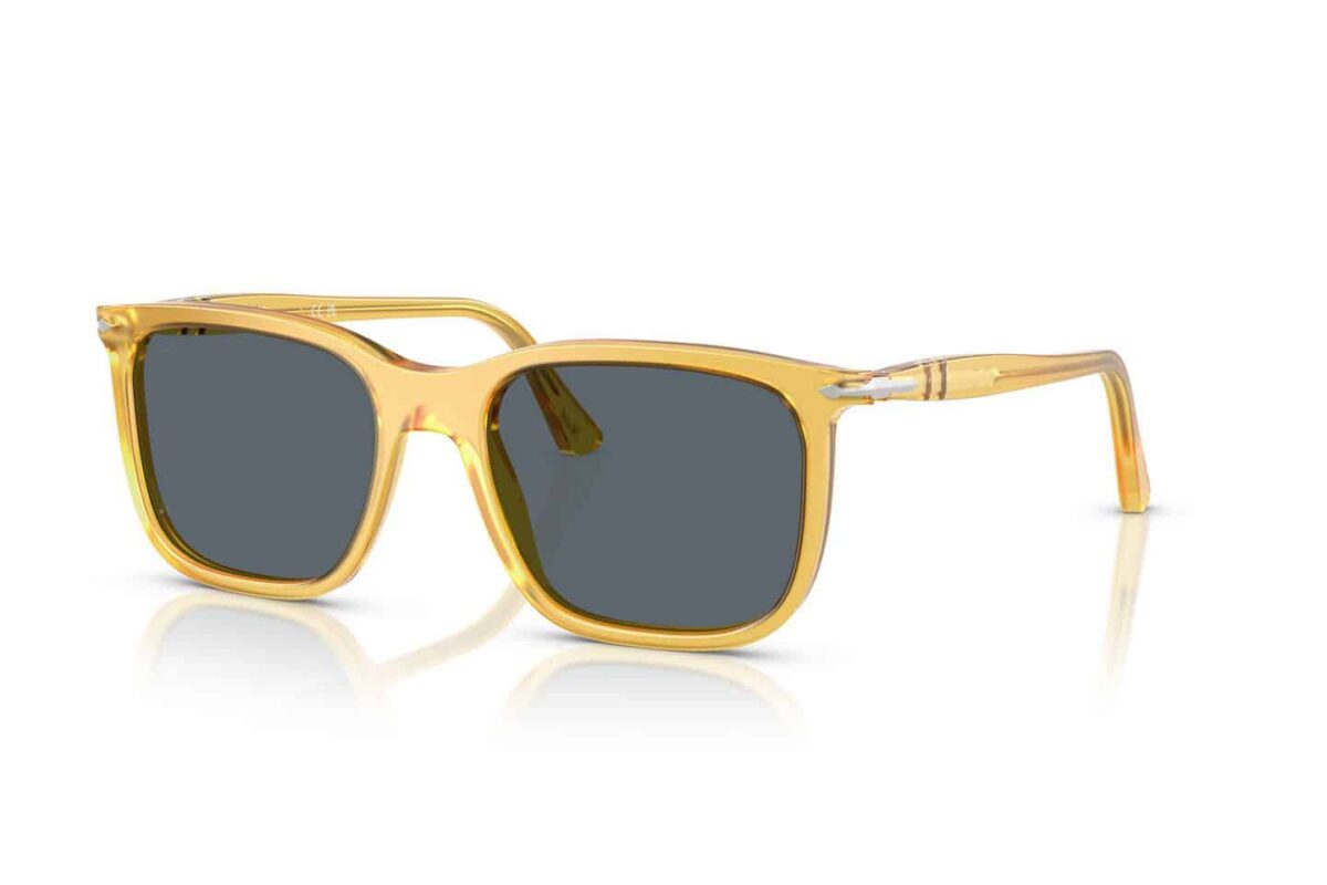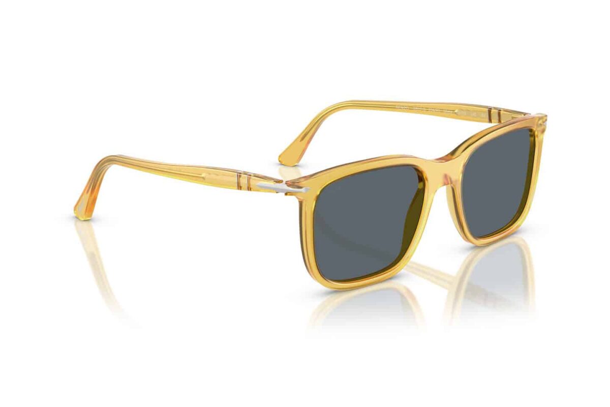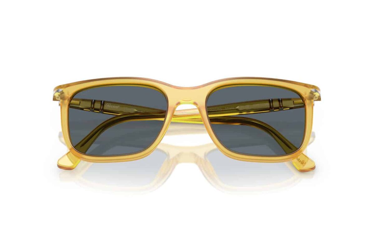Persol διαθέτουν φακούς 100 % απορροφητικούς στην υπεριώδη ακτινοβολία. Πρόκειται για τετράγωνο μοντέλο με λεπτούς βραχίονες σε κιτρινο ημιδιαφανές χρώμα, με το διακρητικό της Persol στους μεντεσέδες. Ο φακός του μοντέλου είναι μπλε και προσφέρει προστασία και αισθητική σε όποιον τα επιλέξει.
