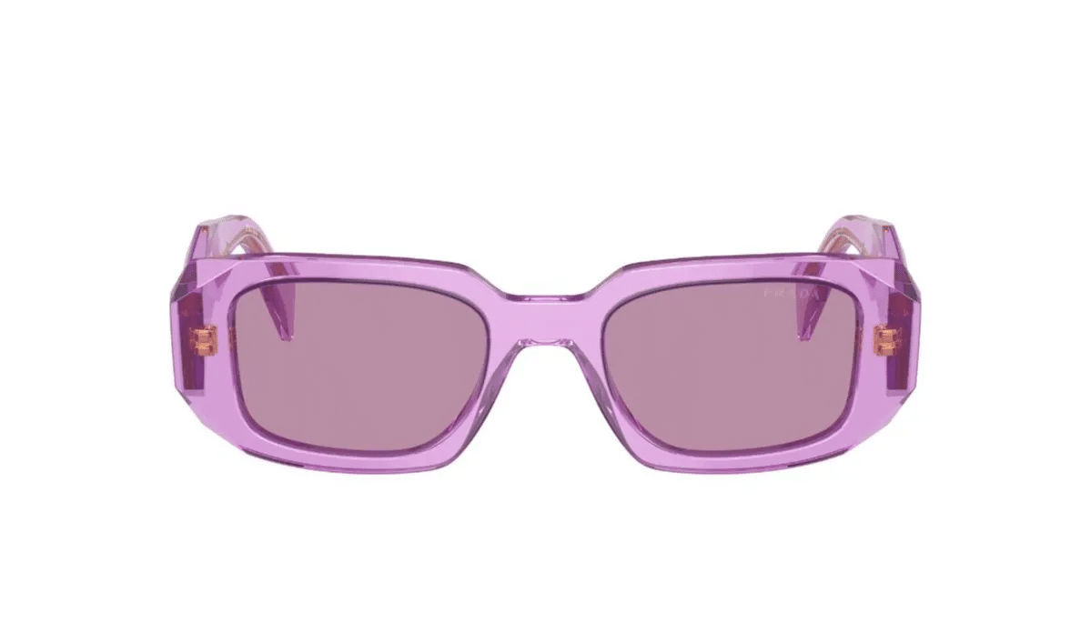 Γυαλιά ηλίου Prada Symbole PR 17WS/13R07Q. Εντυπωσιακός σκελετός σε μελί ταρταρούγα (Caramel Tortoise) με βιολετί φακούς (49mm) και γεωμετρικό σχεδιασμό με το λογότυπο Prada.