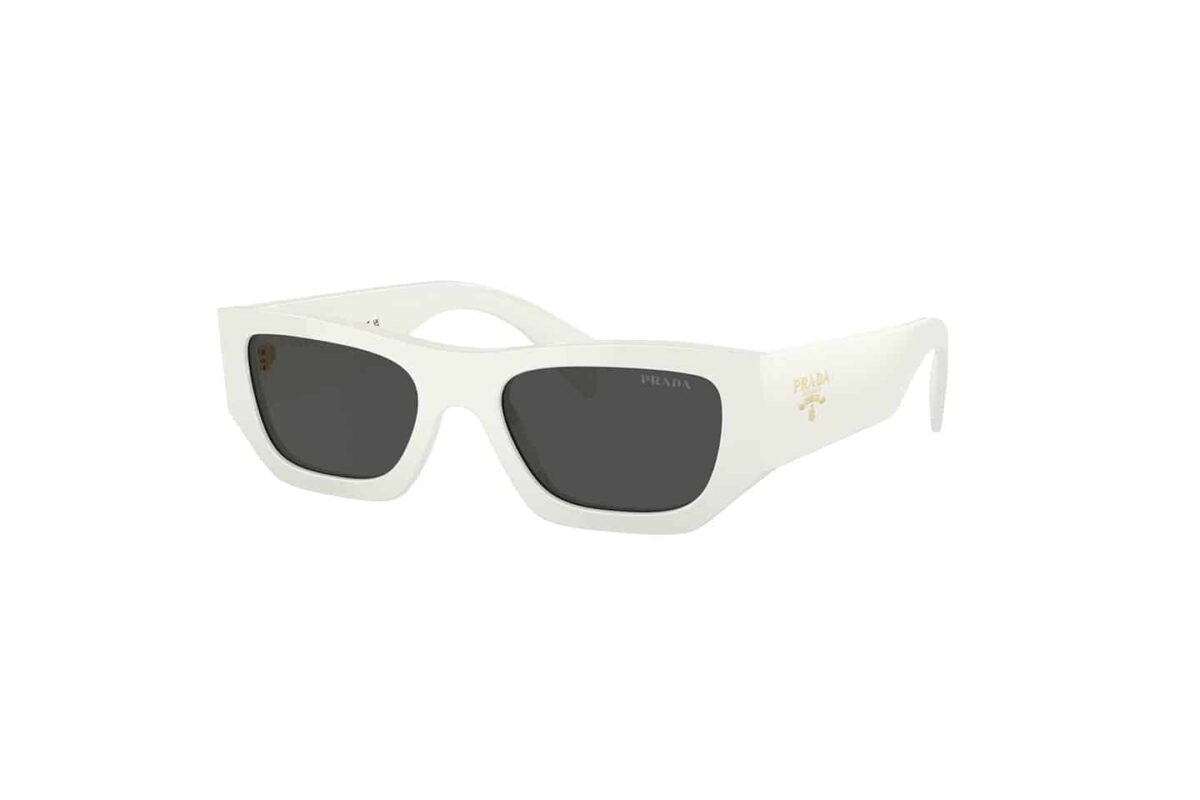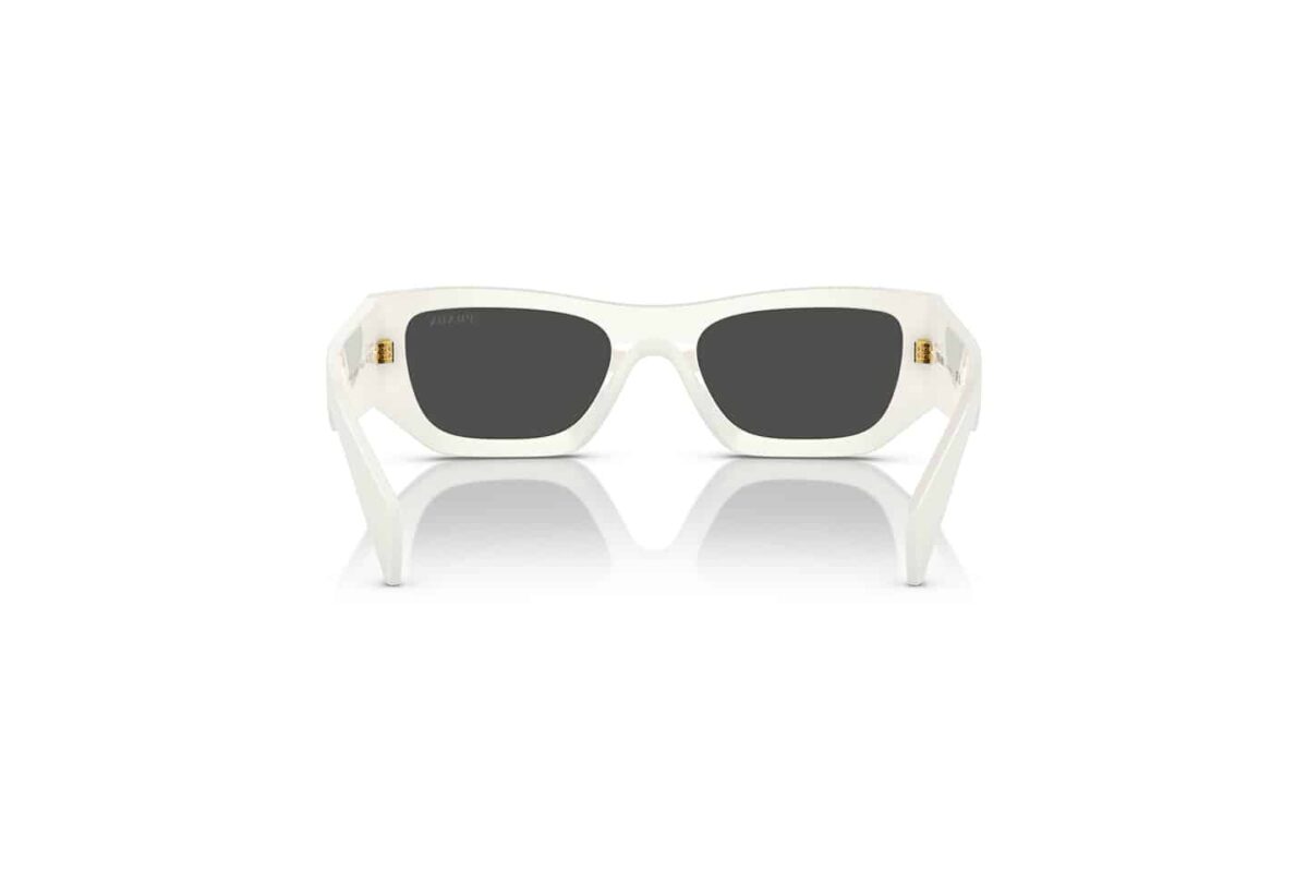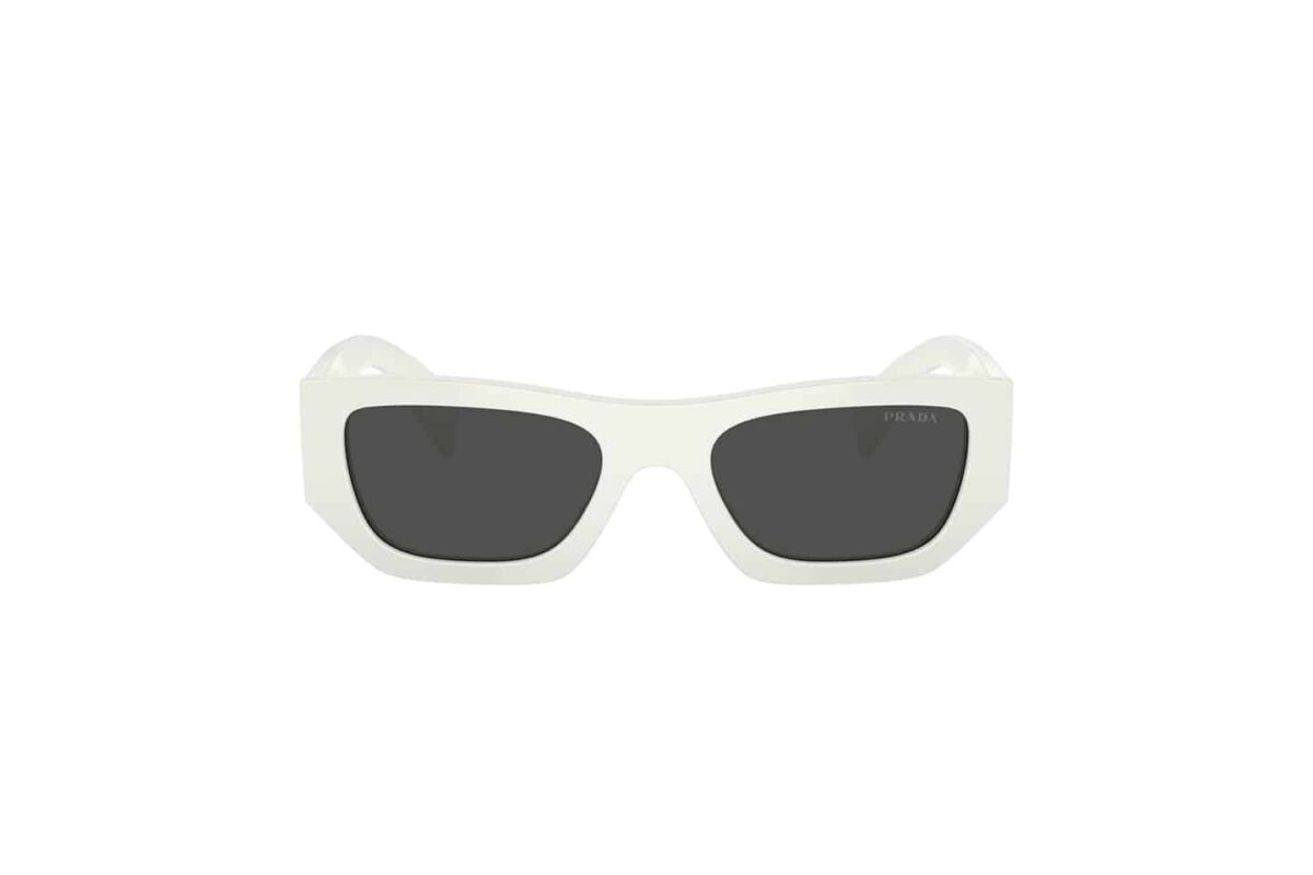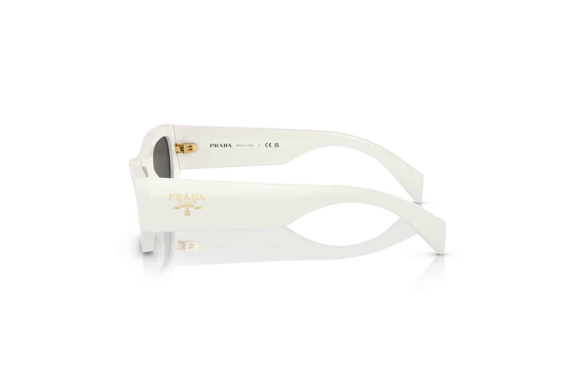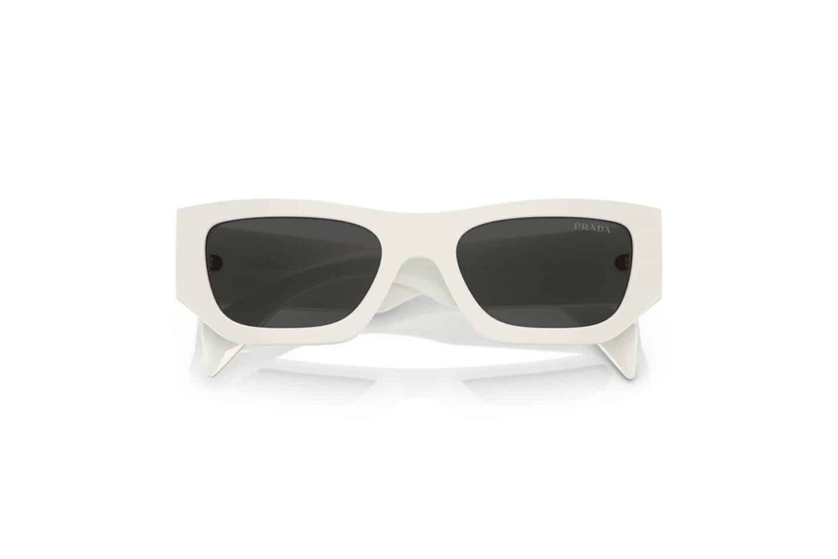 Εκφράστε την avant-garde πλευρά σας με τα γυαλιά ηλίου Prada PR A01S (A01S). Ένα σχέδιο που ξεπερνά τα συνηθισμένα, με έναν τολμηρό, γλυπτό σκελετό από acetate σε εντυπωσιακό λευκό χρώμα (Chalk White – 17K08Z). Η γεωμετρική, πολυεπίπεδη φόρμα του δημιουργεί ένα μοναδικό οπτικό αποτέλεσμα. Οι φακοί με εφέ καθρέφτη σε βιολετί και χρυσές αποχρώσεις προσθέτουν μια φουτουριστική πινελιά, ενώ το τρισδιάστατο τριγωνικό λογότυπο της Prada στους βραχίονες υπογράφει ένα κομμάτι υψηλής ραπτικής.