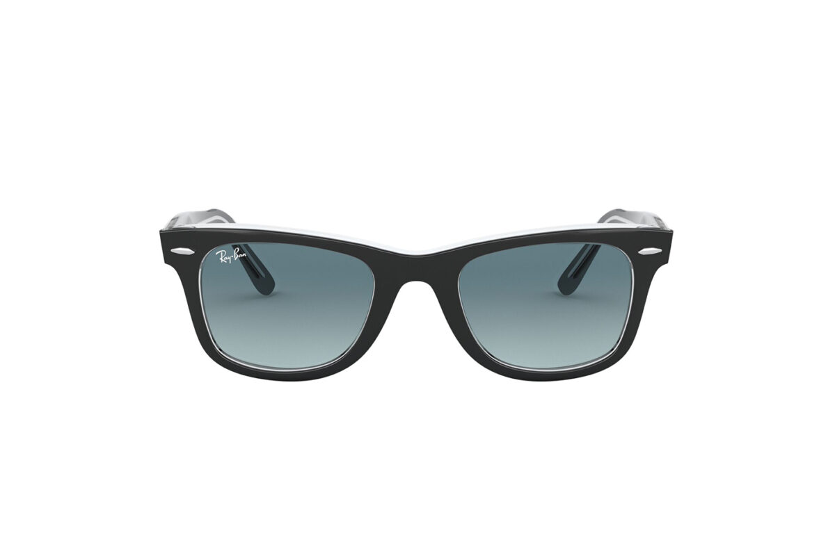 Tα Unisex Γυαλιά Ηλίου RAYBAN Wayfarer 2140 (12943M/50), έχουν σχήμα D, στρογγυλό, ματ μαύρο υψηλής ποιότητας acetate σκελετό με κλασικούς μαύρους βραχίονες με ασημί μεταλλικό ανάγλυφο Ray Ban λογότυπο και Κατ. 3 Μπλε Ντεγκραντέ Φακούς Polycarbonate που προσφέρουν υψηλή προστασία από τις UVA / UVB ακτίνες κάτω από τον ήλιο.
