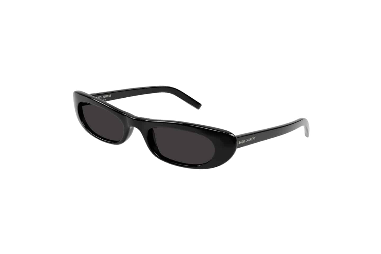 Ο σκελετός είναι κατασκευασμένος εξ ολοκλήρου από premium, γυαλιστερό μαύρο acetate, προσφέροντας ένα τολμηρό και ταυτόχρονα διαχρονικό αποτέλεσμα. Η χαρακτηριστική διπλή γέφυρα ενισχύει τον δυναμικό χαρακτήρα του σχεδίου, ενώ οι καθαρές γραμμές του αποπνέουν την μίνιμαλ αισθητική που χαρακτηρίζει τον οίκο. Το διακριτικό λογότυπο Saint Laurent, χαραγμένο στους βραχίονες, λειτουργεί ως σφραγίδα αυθεντικότητας. Οι σκούροι γκρι φακοί προσφέρουν 100% προστασία από την υπεριώδη ακτινοβολία και ολοκληρώνουν το μυστηριώδες, σοφιστικέ ύφος.