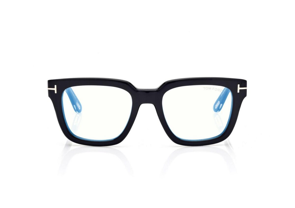 Ένα iconic statement γυαλί οράσεως από τον Tom Ford. Ο τολμηρός τετράγωνος σκελετός FT6027-B σε στιλπνό μαύρο acetate ενσωματώνει την υπογραφή ‘T’ του οίκου. Έρχεται εξοπλισμένο με φακούς τεχνολογίας Blue Block που προστατεύουν τα μάτια από το μπλε φως των οθονών. Ο απόλυτος συνδυασμός πολυτελούς design και σύγχρονης λειτουργικότητας.